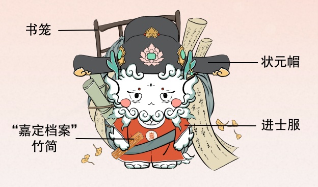 2.它头戴状元帽,象征“嘉定三状元”的教化盛誉;