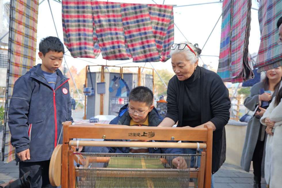 在前滩公园巷最西侧,有一只透明的气泡球成了最亮眼的风景——里面藏着一台会“织梦”的老织布机,上海市民不仅能亲手摸到绵密扎实的崇明土布,还能现场挑选萌趣布艺文创,直观感受崇明非遗的魅力。