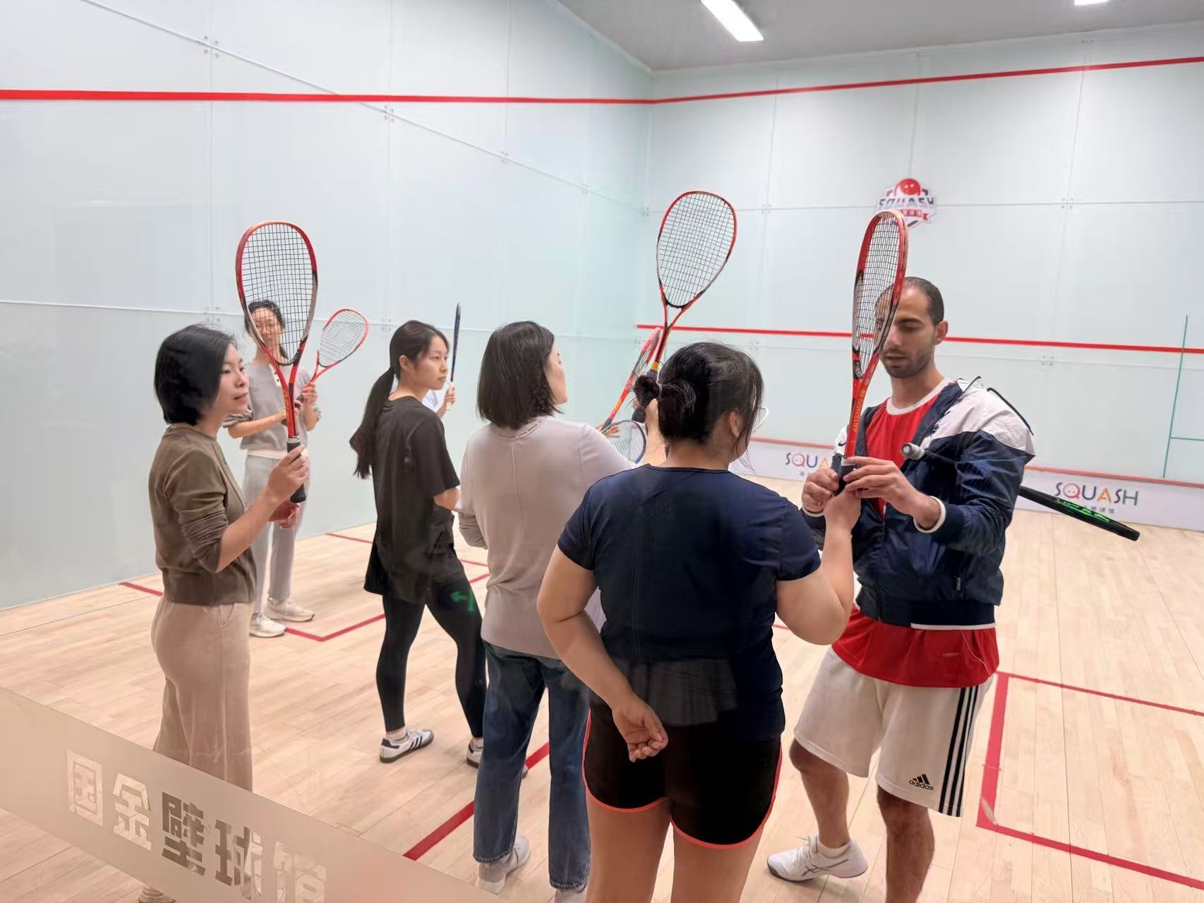 青年在桃浦镇青年夜校壁球课学习,该课程获评市级“2025年度十大夜校课程”