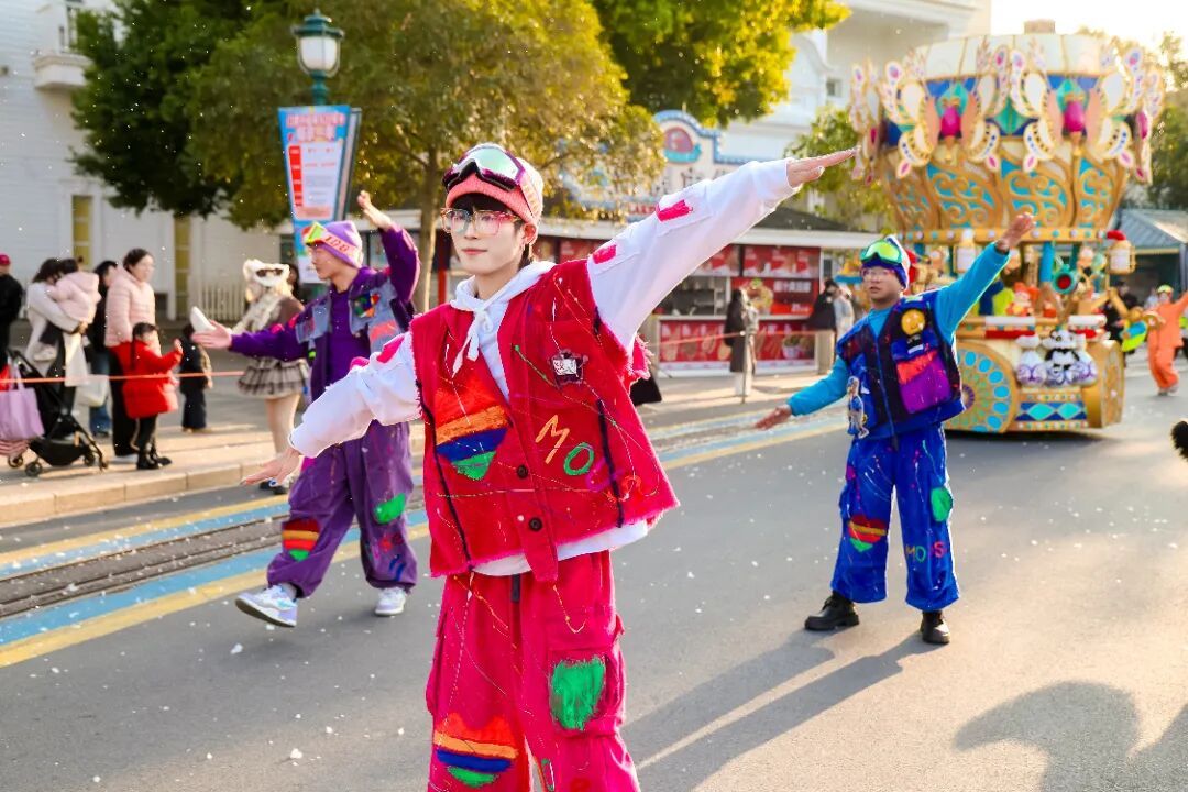 在演艺层面,本届欢禧节也进行了全新升级。震撼的火焰特效、“穿越次元谷”花车大巡游、以及高糖甜心快闪秀、《傩福启岁》祈福巡礼、“许你耀眼”跃动巅峰表演等轮番登场,持续点燃园区气氛。