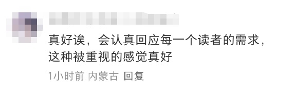 来了以后离不开了,太好了!它不断在了解读者有什么新要求、有什么新想法吗、还有什么可改进的措施吗?