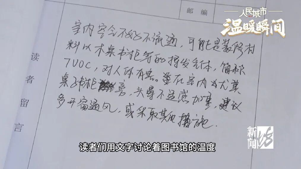 留言本放在走廊尽头,翻开它,读者们用文字讨论着图书馆的温度、茶水间的设施、书本的上架需求……不管是吐槽还是建议,桩桩件件都附上了图书馆的回应。