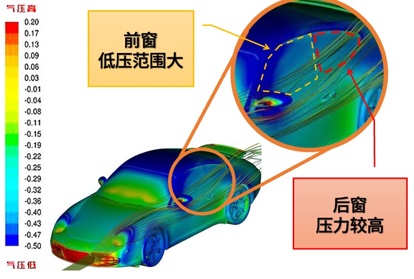 换气最好的组合是对角两窗。前部窗口压力较低,后部窗口压力较高,空气主流会从后窗进入绕行至压力更低的对侧前窗流出,于是自然形成了“穿堂风”。