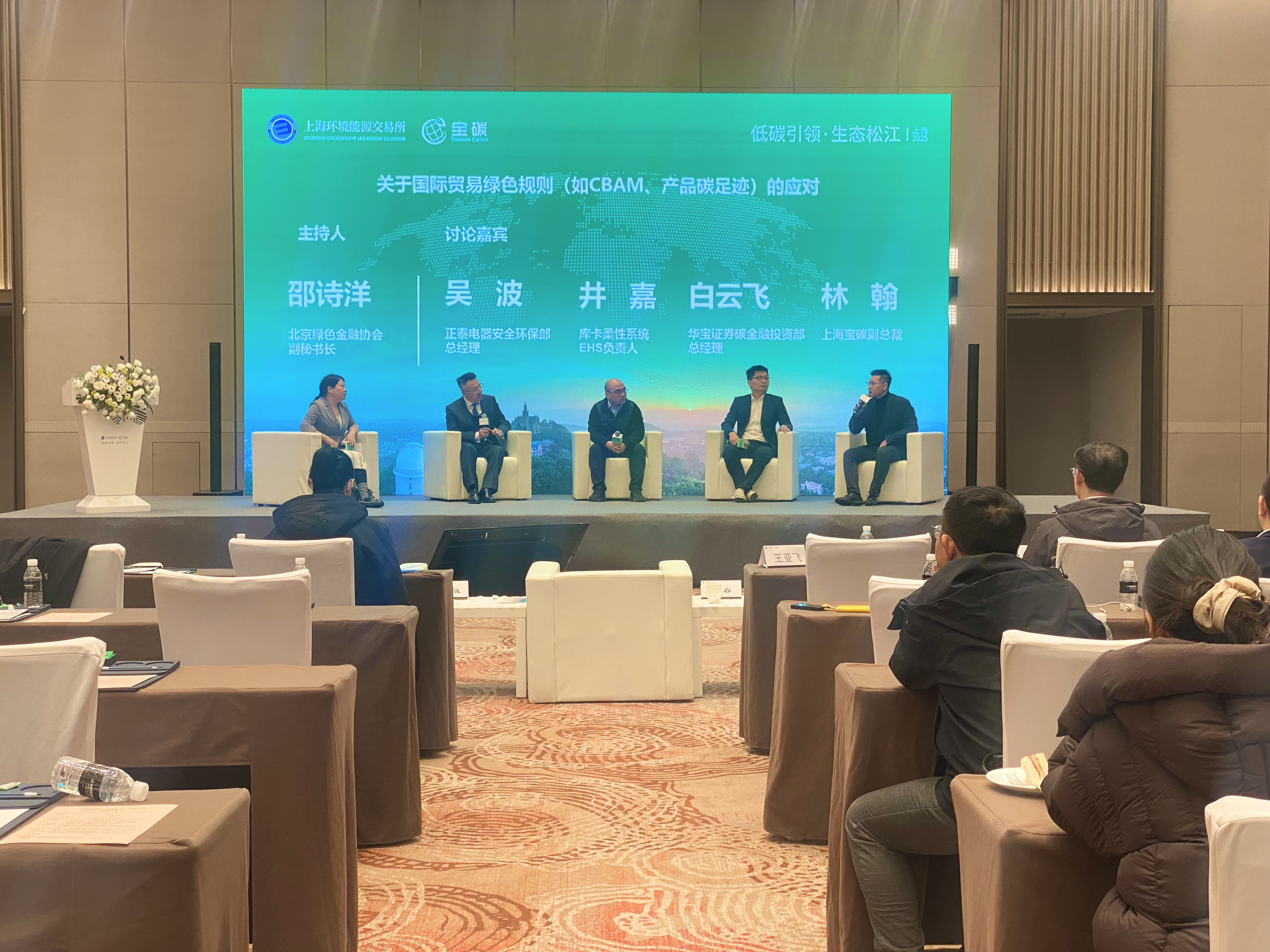活动的沙龙环节聚焦国际贸易规则应对与绿色转型赋能。针对欧盟碳边境调节机制(CBAM)的挑战,企业代表指出:“数据碎片化和供应链协同是最大难点。我们需要专业外脑、数字化工具和资金支持,才能系统化应对。”上海宝碳代表建议:“链主企业应牵头搭建规则框架,逐步推动供应链碳数据透明化。”