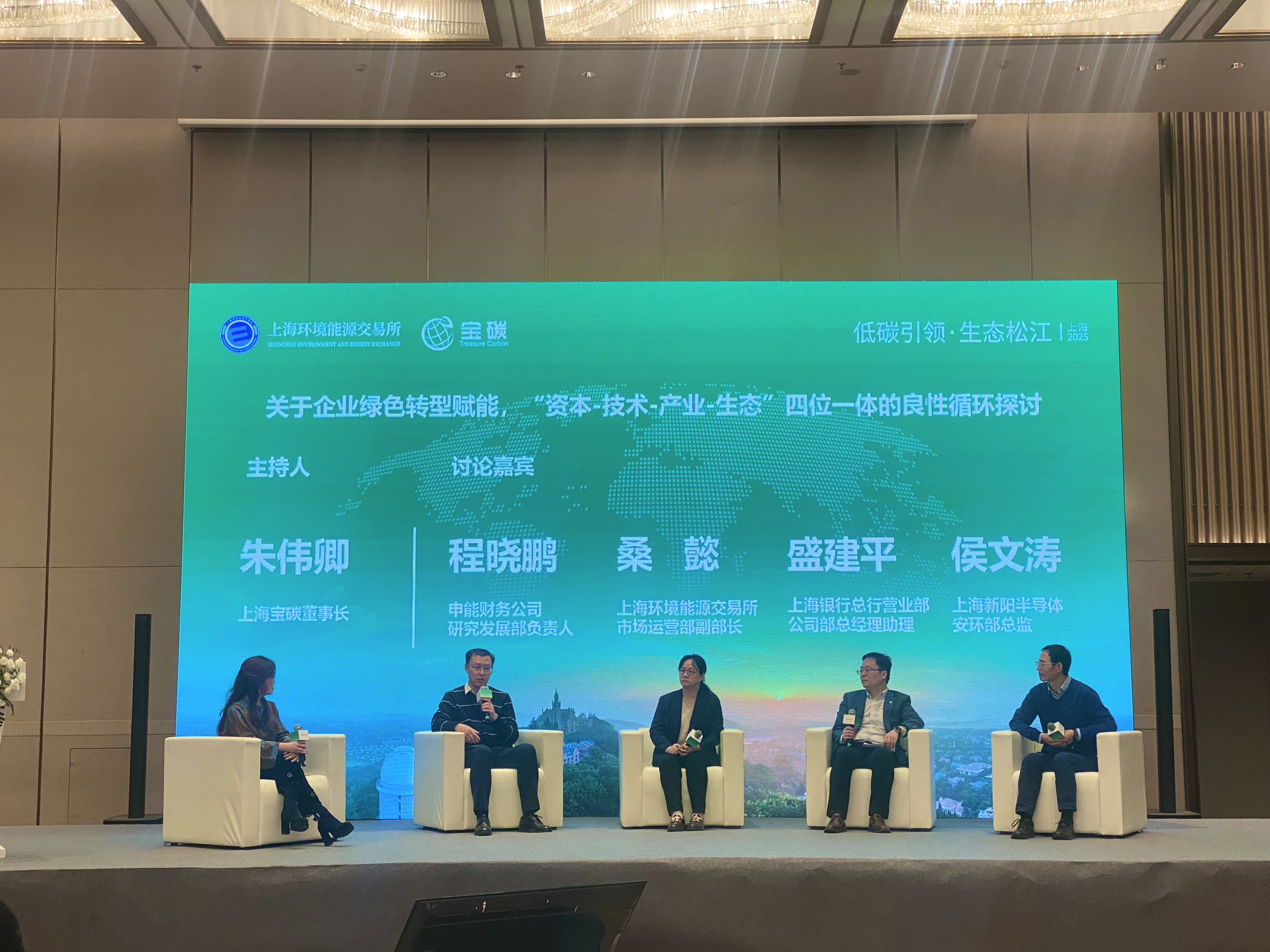 在绿色金融支持方面,上海银行代表介绍了创新实践:“我们通过CCER质押、转型债券等工具,为企业提供全周期碳金融解决方案。未来将探索跨境碳资产交易,助力企业对接国际市场。”申能财务公司则分享了碳减排挂钩贷款案例,强调“金融赋能需与技术创新、产业生态形成闭环”。