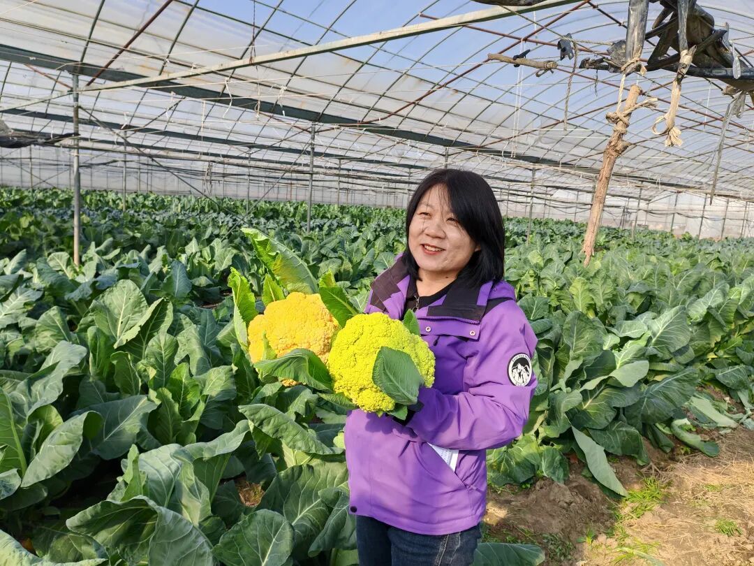 上海市农业科学院园艺所副研究员姚雪琴从事各类花菜品种的选育已近20年。在蔬菜大棚内,她摘下一颗已成熟的紫色花菜,剥开外层叶片,露出紧实饱满的花球。姚雪琴介绍:“这个品种叫‘东方之紫’,其紫红色来自天然花青素,可增强人体免疫力,促进肝脏解毒等。”