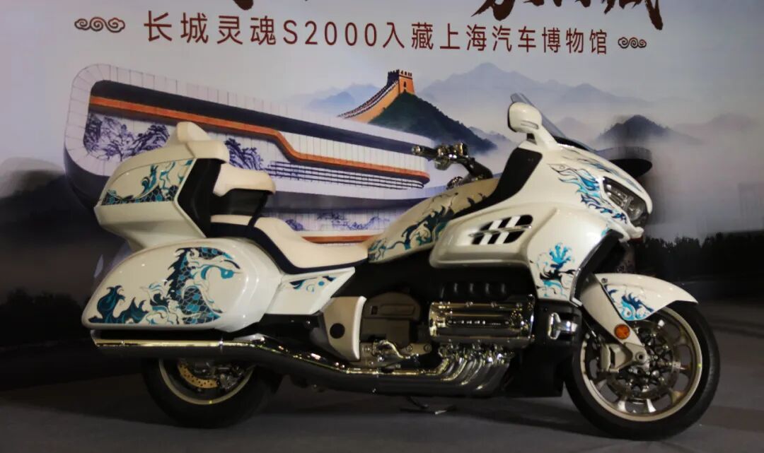 当天下午,入藏仪式在博物馆展厅举行。一辆以青花瓷白为底、龙纹云饰为绘的摩托车静置于展台。据悉,长城灵魂S2000的动力总成采用八缸2000cc水平对置发动机,与之配合的是8挡双离合自动变速器,匹配轴传动;S2000以青龙与祥云为核心意象,采用经典蓝白配色,青花瓷的留白承载着东方美学的精神内核。