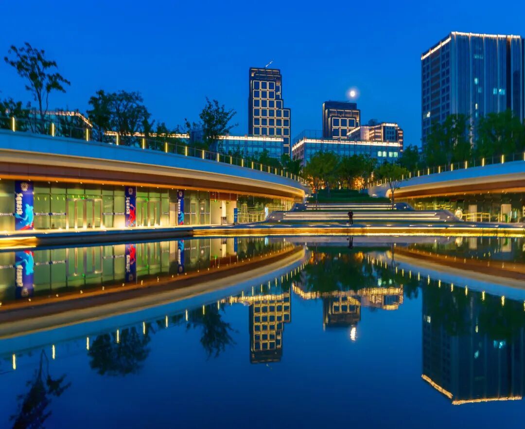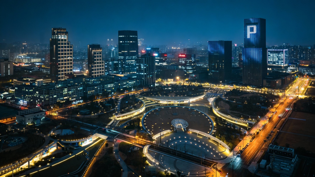 每当夜幕降临,桃浦便悄然换上流光溢彩的衣裳,褪去白日的繁忙。在星月与灯光交织中,展现出独特而迷人的另一面。 智创TOP产城综合体 现代光影,勾勒出未来的轮廓。