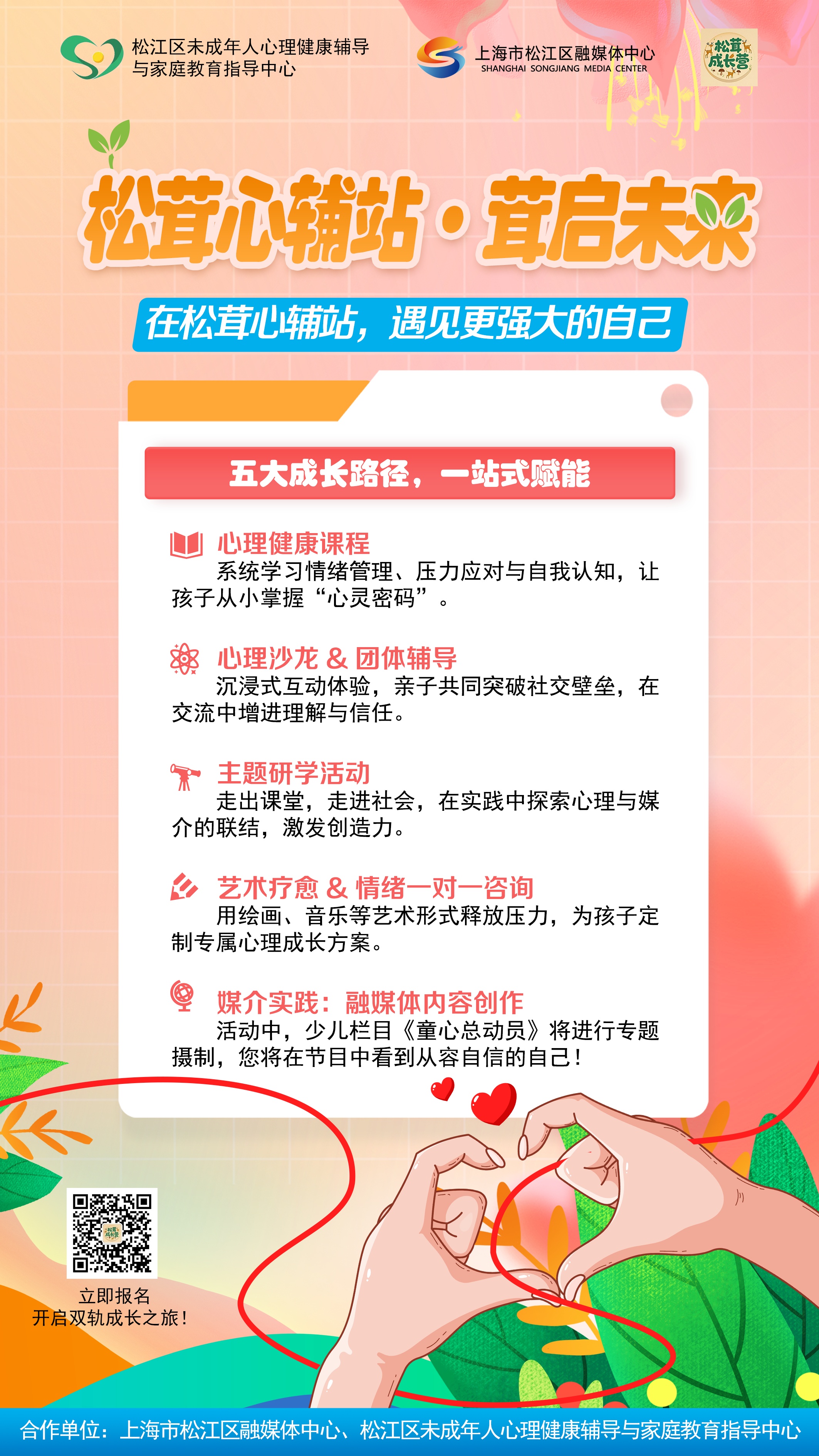 松茸心辅站于2025年11月成立,是松茸成长营携手松江区未成年人心理健康辅导与家庭教育指导中心倾心打造的"心灵加油站"。该平台通过"媒介素养+心理健康"双轨成长体系,为青少年提供成长“心”能量,助力孩子们在成长道路上遇见更好的自己。据悉,松江心辅站2026年将持续推出更多精彩活动,感兴趣的家长可关注“松茸成长营”松茸心辅站专栏报名参与。