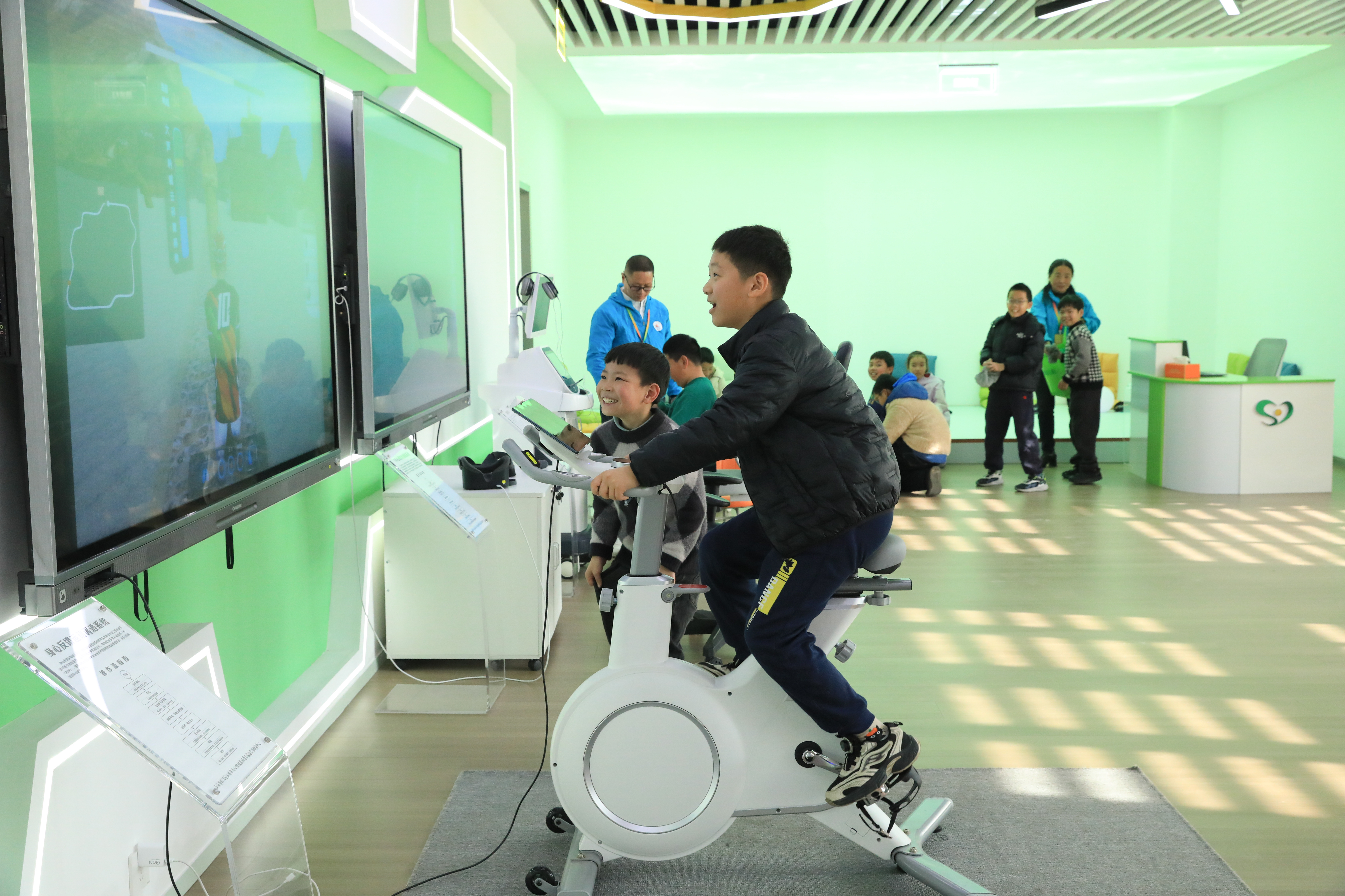 一早,孩子们在家长陪伴下,怀揣着好奇走进松江区未成年人心理健康辅导与家庭教育指导中心。该中心的心质探究体验坊内,先进的沉浸式宣泄系统、身心反馈运动调适系统及身心反馈放松训练系统吸引了孩子们争相体验。