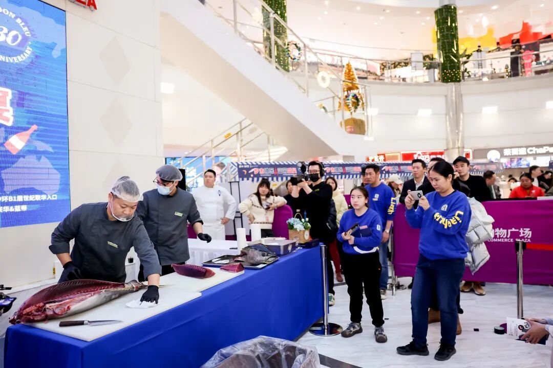 活动中,震撼的“金枪鱼开鱼秀”、优雅的“西班牙Secco火腿分切表演”精彩纷呈,引来不少市民围观。