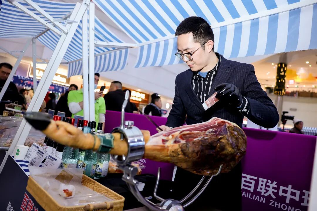 “这西班牙Secco火腿入口醇香,是咸鲜口的,切成薄片后入口即化,真是味蕾的享受。”今天带着全家来“血拼”的王女士一边品尝一边买单。