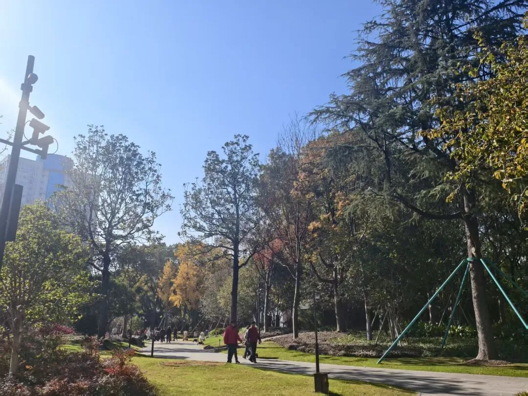 今日申城天气晴好,阳光慷慨倾洒。上午十点,漕溪公园内热闹非凡。阳光穿透枝叉,均匀地铺洒在路面上,给来往行人、休憩游客都披上了一层温暖的光晕。公园里,儿童乐园是热门之地,草坪边幼儿车整齐排列。孩子们在草坪间自由穿梭、尽情嬉戏。