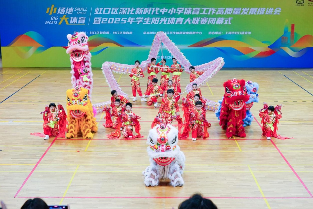12月26日,虹口体育馆内龙狮欢腾,鼓声铿锵。广中路小学的孩子们带来的“龙腾盛狮”表演,拉开了“虹口区深化新时代中小学体育工作高质量发展推进会暨2025年学生阳光体育大联赛闭幕式”的序幕。来自全区多所中小学的师生代表齐聚一堂,共同见证这一年度体育教育的“高光时刻”。