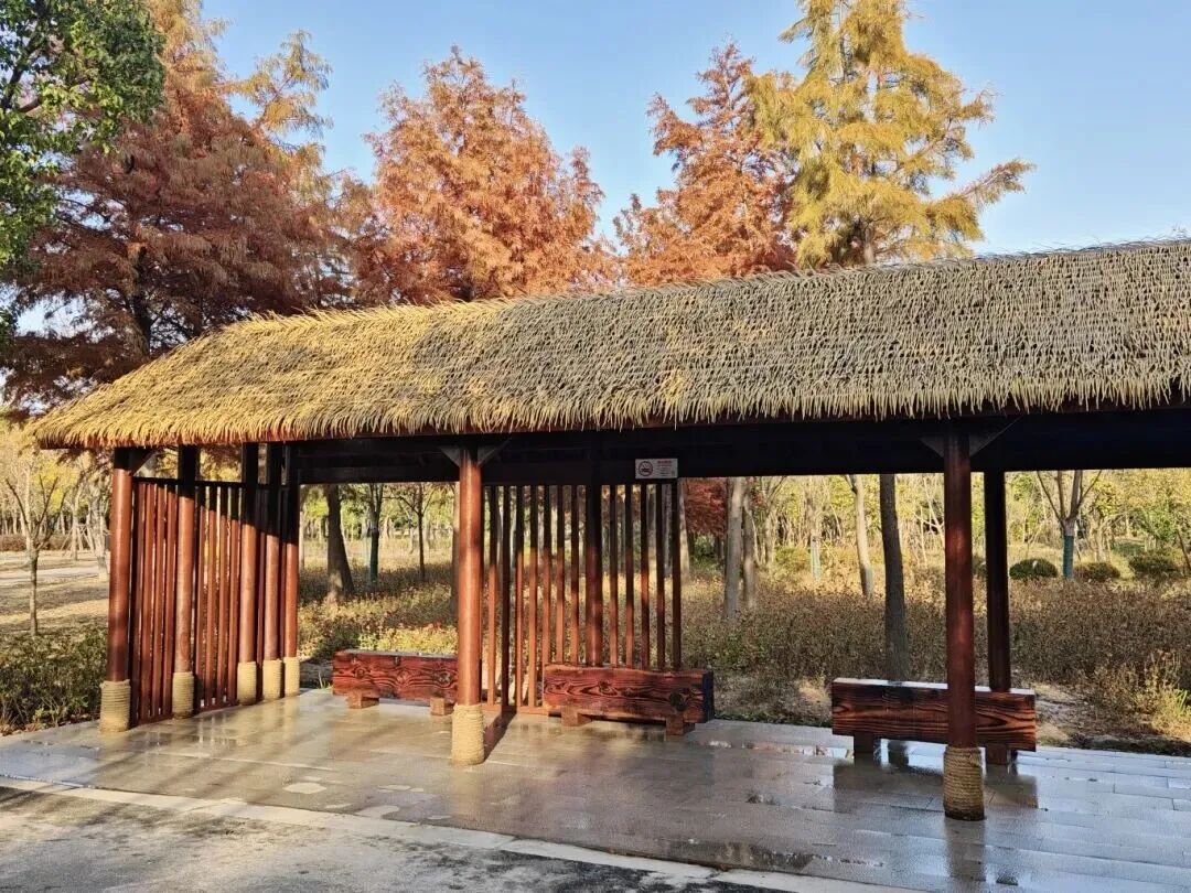 ✔️ 设施新升级:新增茅草休憩亭,与层林尽染的红杉林相映成趣;增设低干扰木栈道,实现人车分流,游览动线更安全顺畅。