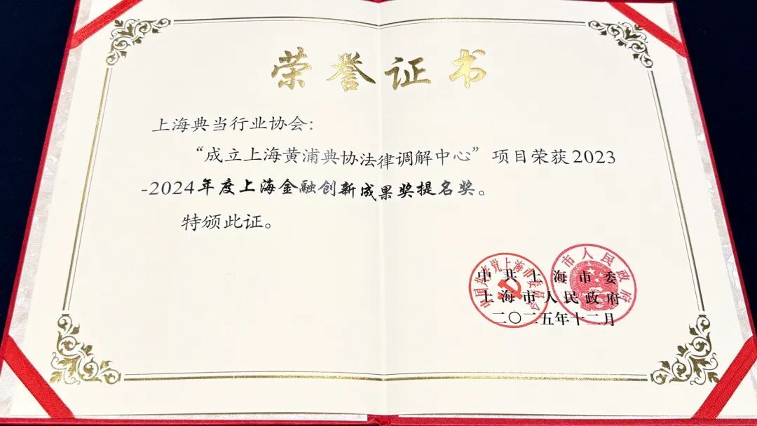 12月26日,“央视财经金融强国·上海金融之夜——上海金融创新成果发布暨2025滴水湖金融大会”在临港中心隆重举行。活动现场正式揭晓2023-2024年度上海金融创新成果奖获奖名单,上海典当行业协会申报的“成立上海黄浦典协法律调解中心”项目荣获提名奖。