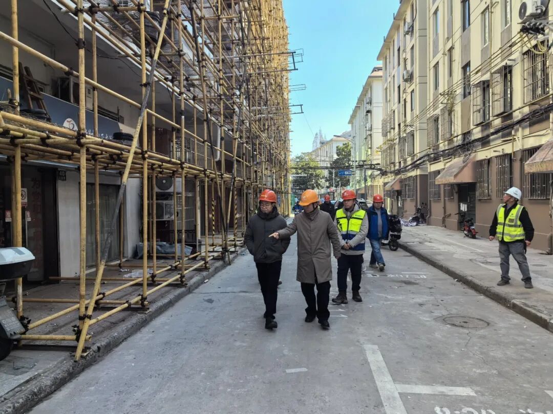检查现场,区房管局督促施工单位对发现的问题即知即改,确保脚手架落地、材料堆放和垃圾清运等过程安全可靠的同时,减少对小区居民正常出行的影响。同时,要求项目代建单位、施工单位、监理单位做好节日期间现场值班工作,保障施工现场零安全事故。
