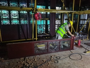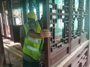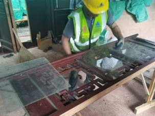 主要施工流程:木门窗拆卸→玻璃拆卸→门窗框整修→摇梗检修→木门窗归按→五金件安装。