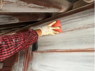 清除木构件表面的灰尘、油迹、胶痕、树脂、色斑、木毛等缺陷,使表面平整光滑,木纹清晰,以确保涂膜的附着力的提高。