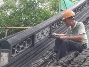 按照原形制对建筑屋脊、花饰进行恢复。