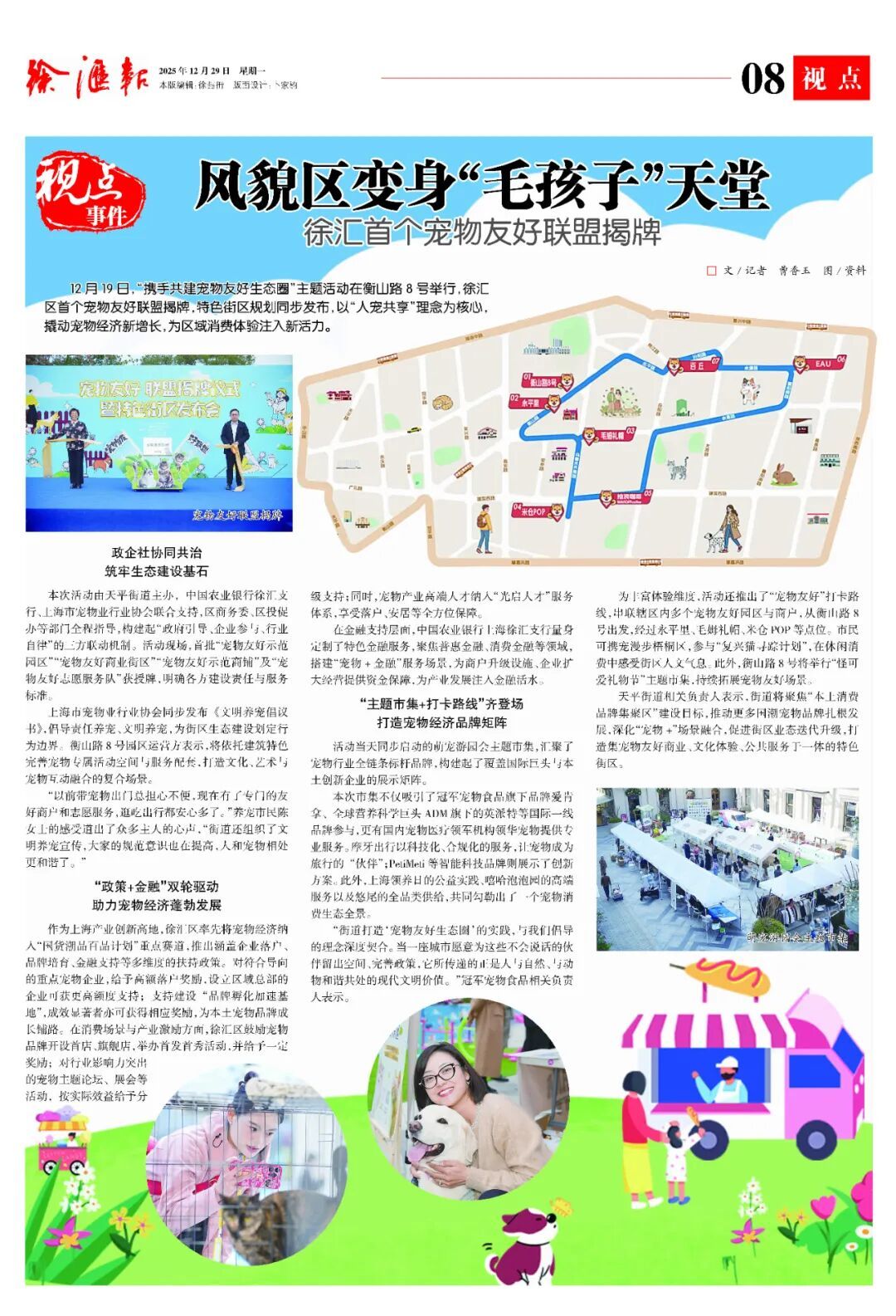 徐汇区首个宠物友好联盟闪亮登场,政府、企业、社区联手为“毛孩子”打造温馨家园。从专项政策到贴心金融服务,全力助推宠物行业活力成长。萌宠市集、打卡路线热闹开启,汇聚国内外潮流品牌,让遛宠逛街两不误。在这里,每一只毛茸茸的小伙伴都能找到专属快乐,城市生活因它们而变得更暖、更有趣。