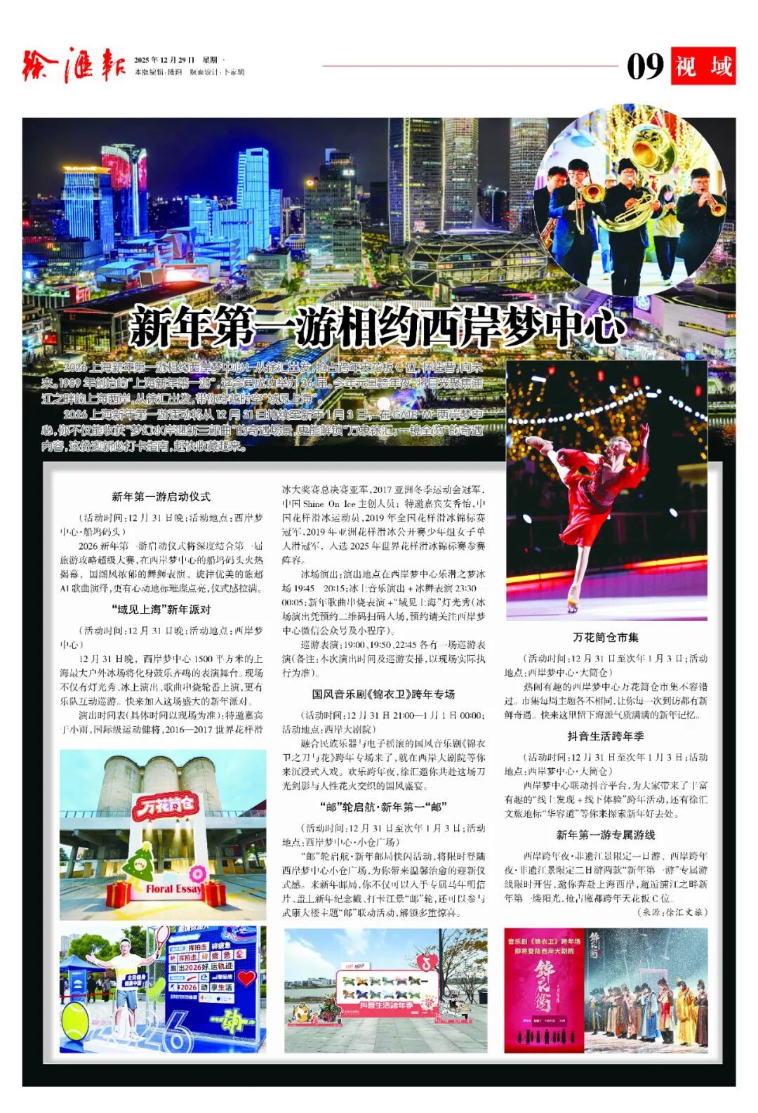 2026上海新年第一游,在浦江之畔的西岸梦中心与您浪漫相约。从跨年夜璀璨的启动仪式、冰上舞姿翩跹的新年派对,到燃情上演的国风音乐剧,一连串精彩等你来邂逅。逛创意市集、盖纪念邮戳,畅游专属游线,在热闹与欢笑中穿越时光,走向未来。相约西岸梦中心,让我们一起在这里,热热闹闹地开启崭新的一年。