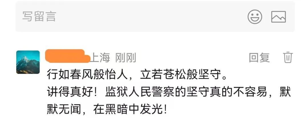 这是上海监狱微信公众号《【十大身边典型提名】林建松:春风化雨,坚守如松》一文中的评论。字里行间显示出社会公众对监狱人民警察这份职业的认同。