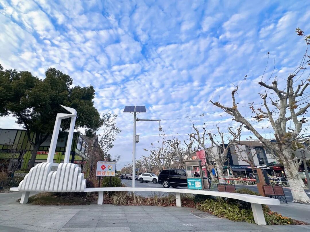 改造整体延续了小区建筑和步行街江南古典的建筑风格,以“花园风情、江南水乡”为设计思路,将约1360平方米的入口广场进行改造升级,既为居民的回家之路增添仪式感,也为行人游客提供散步休憩、拍照打卡的美意空间。