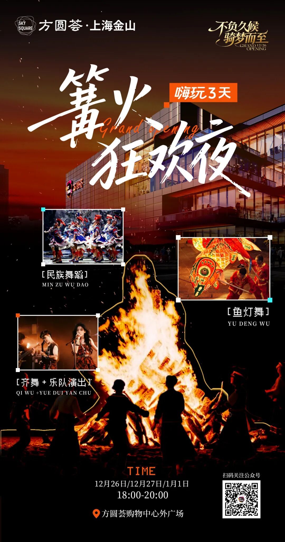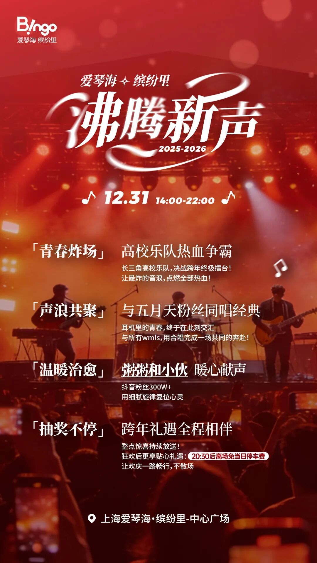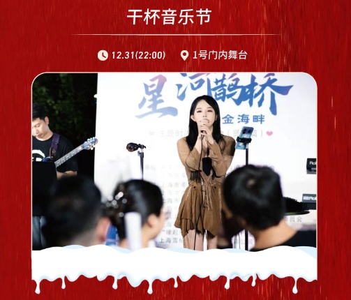 活动内容:跨年音乐界燃炸来袭,人气DJ+乐队表演带来超带感潮酷体验,将气氛推至高潮。