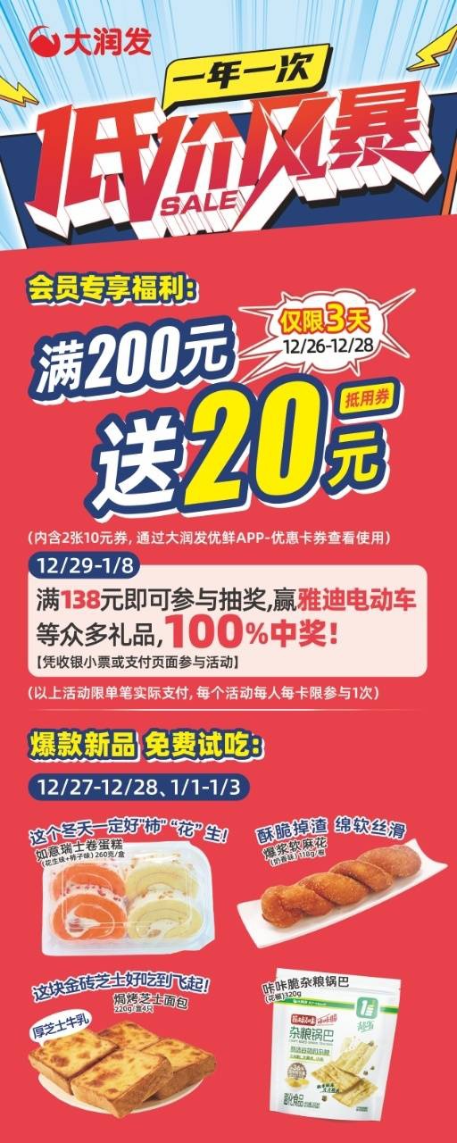 活动内容:会员满138元即可参与抽奖,赢雅迪电动车等众多礼品,100%中奖!