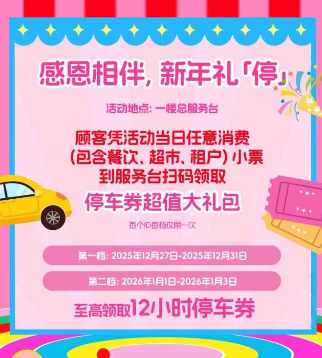 方圆荟:全场单张小票消费满58元可兑换1张抽奖券,消费满108元可兑换2张,抽取电动车、手机、金山城市沙滩跨年烟花秀门票等大奖!数量有限、赠完即止。