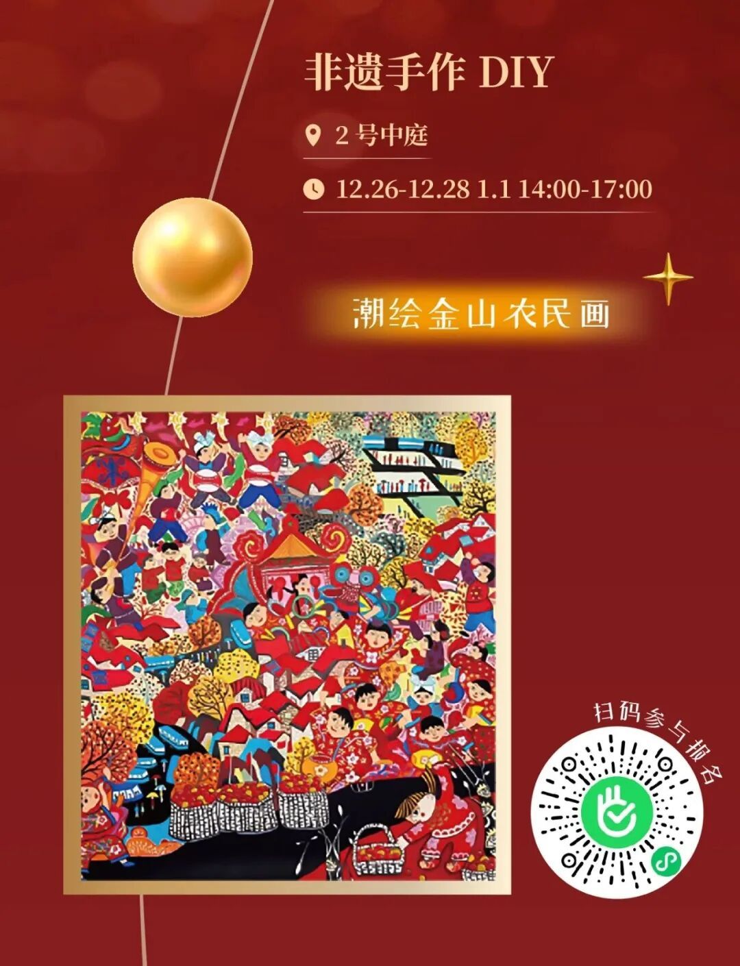 活动内容:14:00-17:00,2号中庭,可欣赏独具特色的金山农民画,感受深藏于笔尖的情感涟漪。