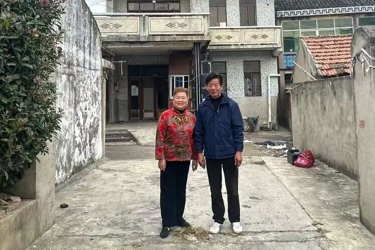 (金汇城中村动迁户交付钥匙后与老宅留影)