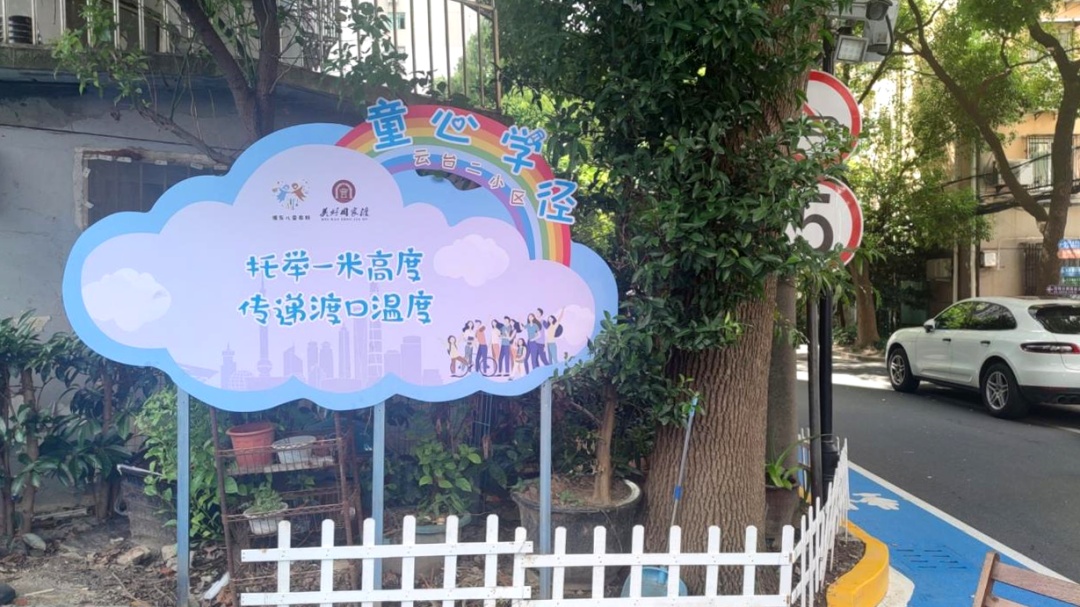 街道妇联联合同济大学,深入社区调研,针对老旧小区道路狭窄、人车混行现状,提出社区适儿化改造方案。在云台幼儿园、上南二村小学等周边地区进行“童心学径”适儿化改造,融入云朵和蓝天元素的设计语言,在原本人车混行的柏油路上划出儿童专属步道,“车辆缓行”提示鲜艳醒目,多处三叉路口设置蓝白相间的“等待区”,增加儿童近人尺度的“栅栏”,并增添“小脚丫”、“小朋友”等童趣图案,为孩子们留出安全通道,筑牢安全防线。