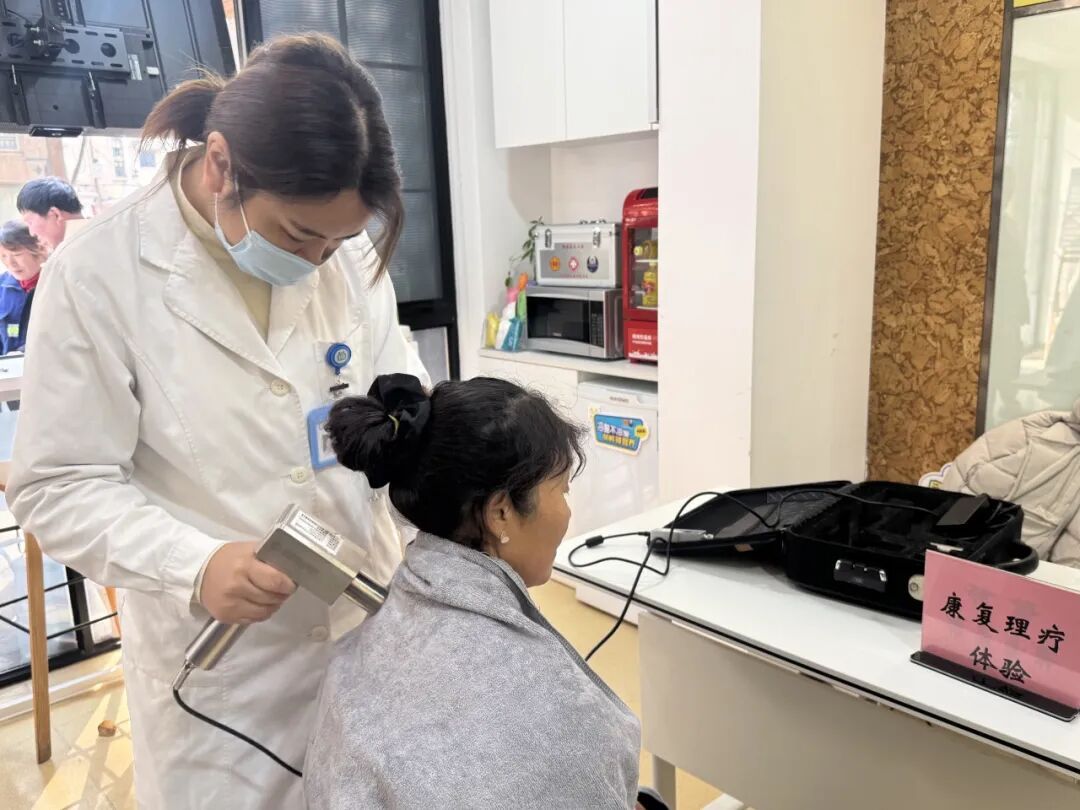 活动现场气氛热烈,不少环卫工人利用午休时间陆续赶来。针对户外工作者普遍存在的作息不定、饮食不规律、长期体力劳动等职业特点,医护志愿者团队为他们开展测量血压、记录数据,并建立简易健康档案;康复治疗师现场提供专业推拿与康复指导,帮助户外工作者缓解肌肉劳损;家庭医生则围绕冬季传染病预防、慢性病管理、职业病防护等热点问题一一解答,并结合户外作业场景,贴心传授实用健康知识。