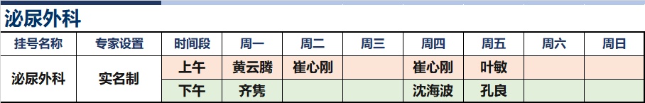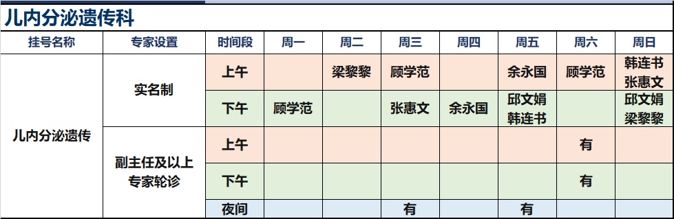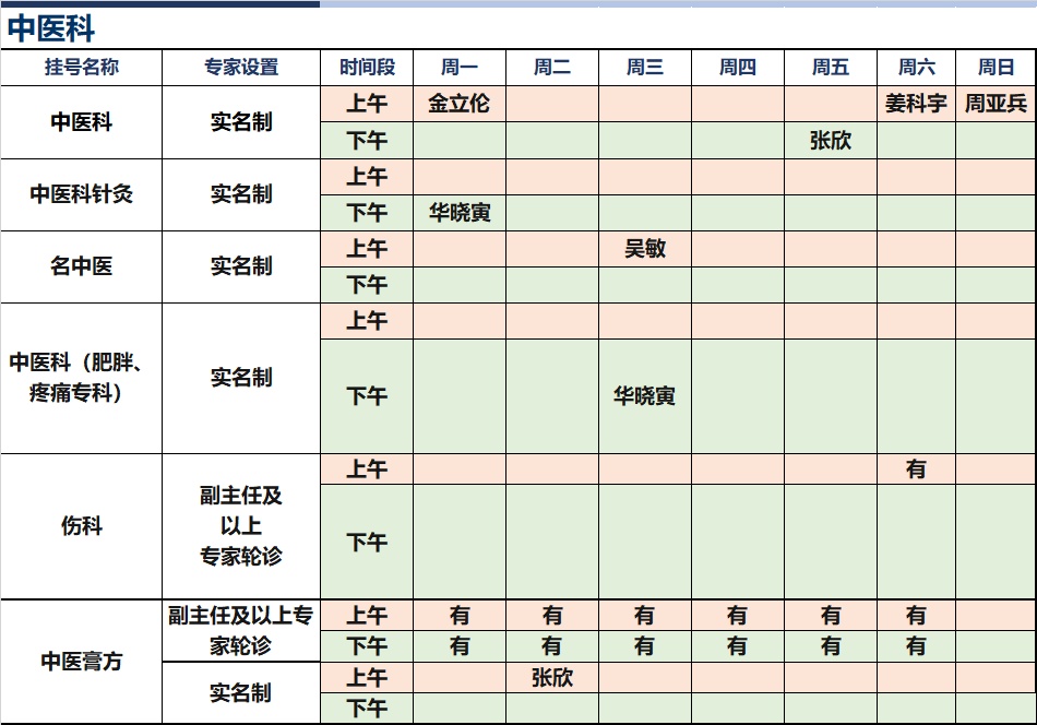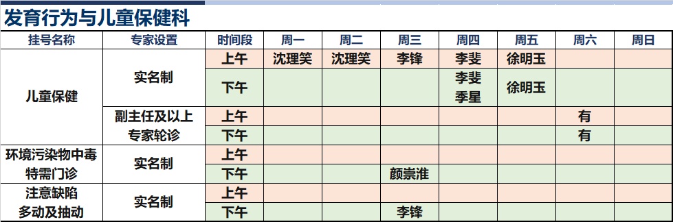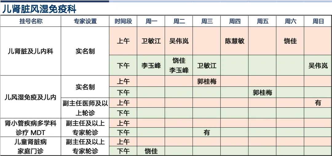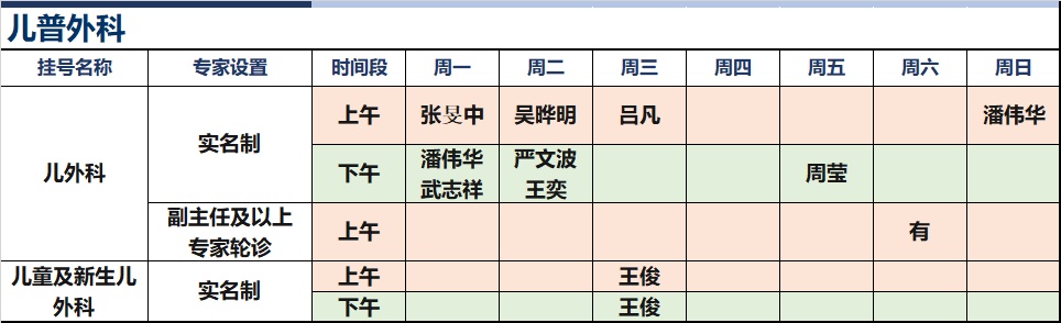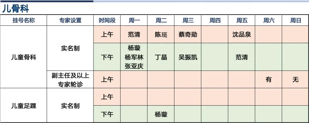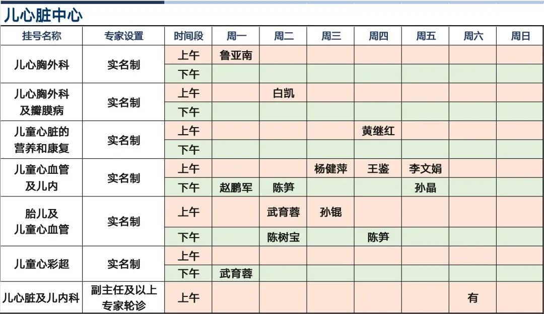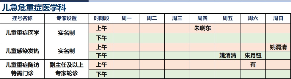 上海新华医院杨浦院区2026年1月份高级专家(特需)门诊一览表