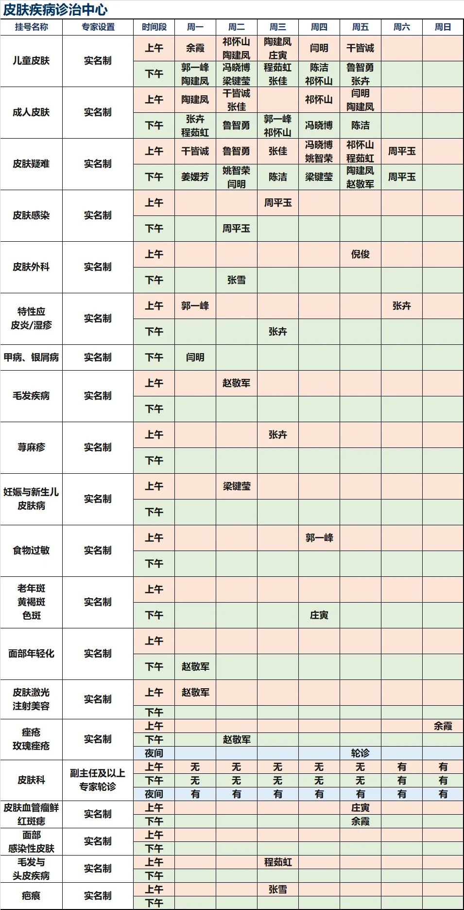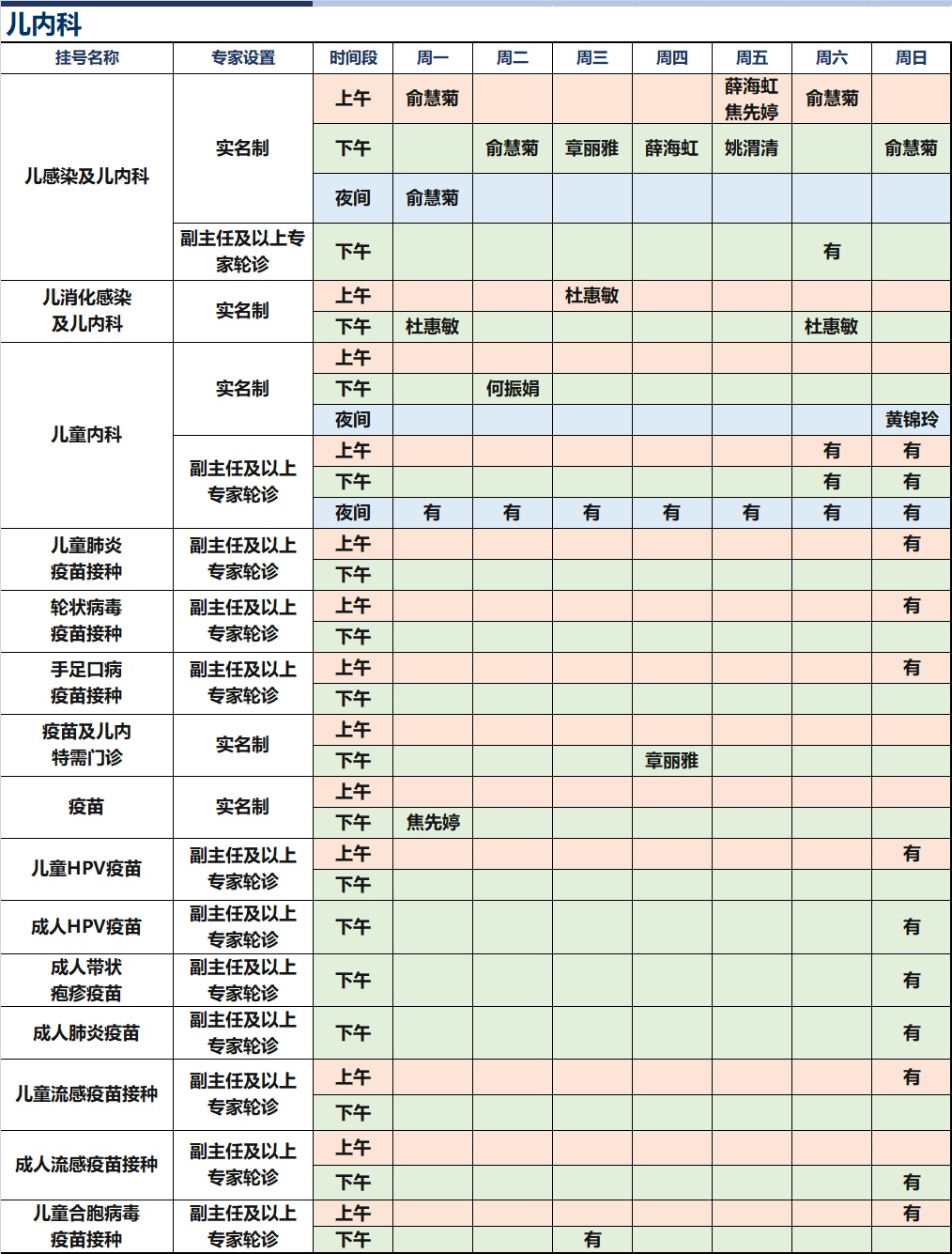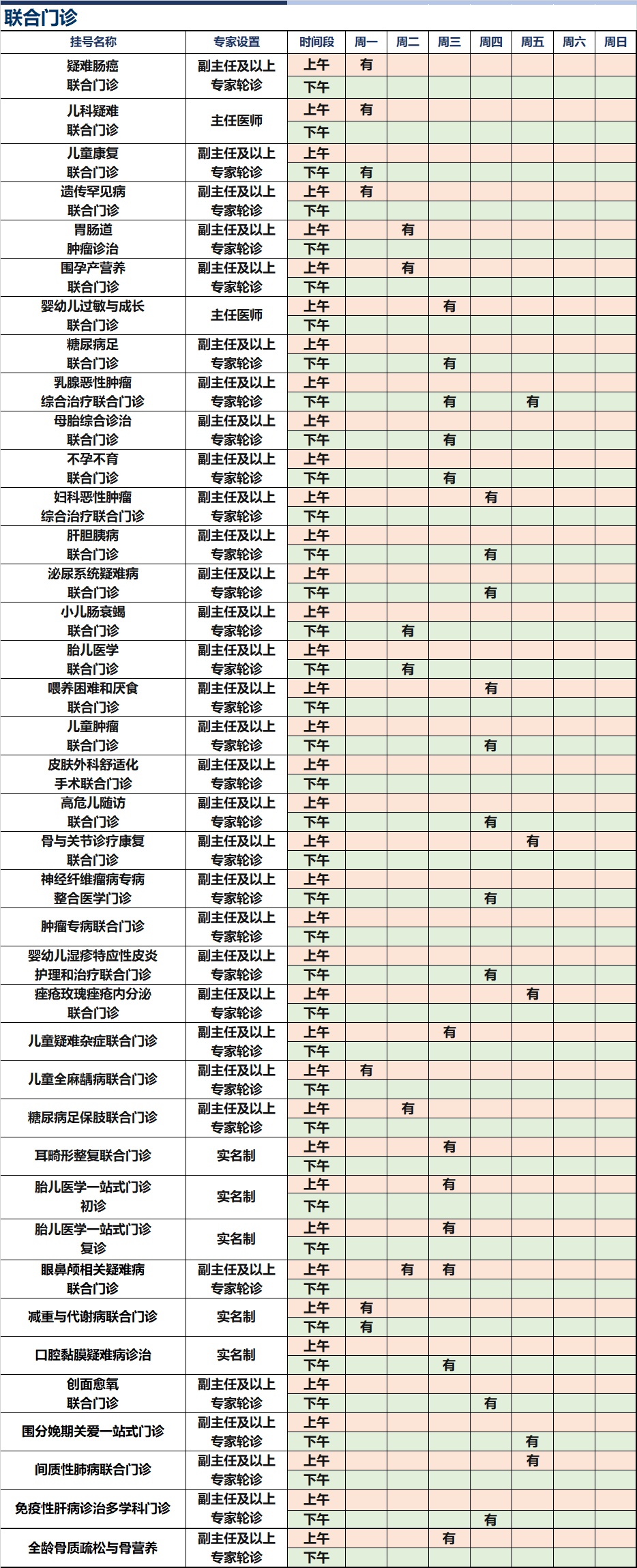 上海新华医院杨浦院区2026年1月份高级专家(特需)门诊一览表