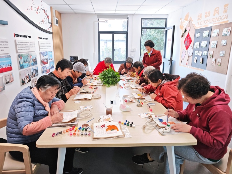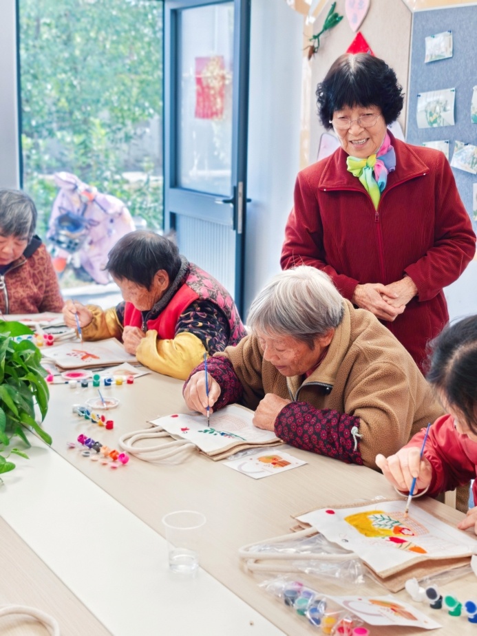 以“聚一轩”为起点,沈西村逐步构建起一套更系统、更具活力的乡村治理与服务网络。在养老服务方面,村里形成了“1+2+2”的布局:1个村级养老服务站,2处互助睦邻点——即“聚一轩”与2024年新建的“聚一阁”,以及2个老年活动室,并通过与张江高科等单位共建,推广“数字化养老服务”,为老人提供更细致的关怀。