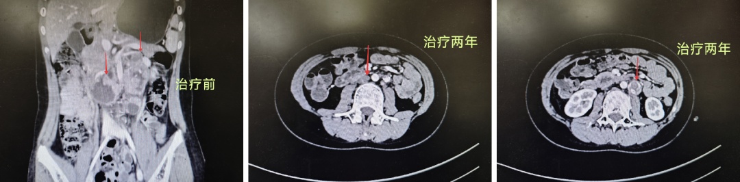 经过两年的系统治疗,转机终于出现。复查影像显示,小雨体内的肿瘤较初诊时明显缩小,双侧肾脏实质内已无明显肿瘤影,仅残留双侧腹膜后及左侧颈部的肿大淋巴结。治疗团队敏锐地捕捉到了这个稍纵即逝的“最佳保肾手术窗口”。