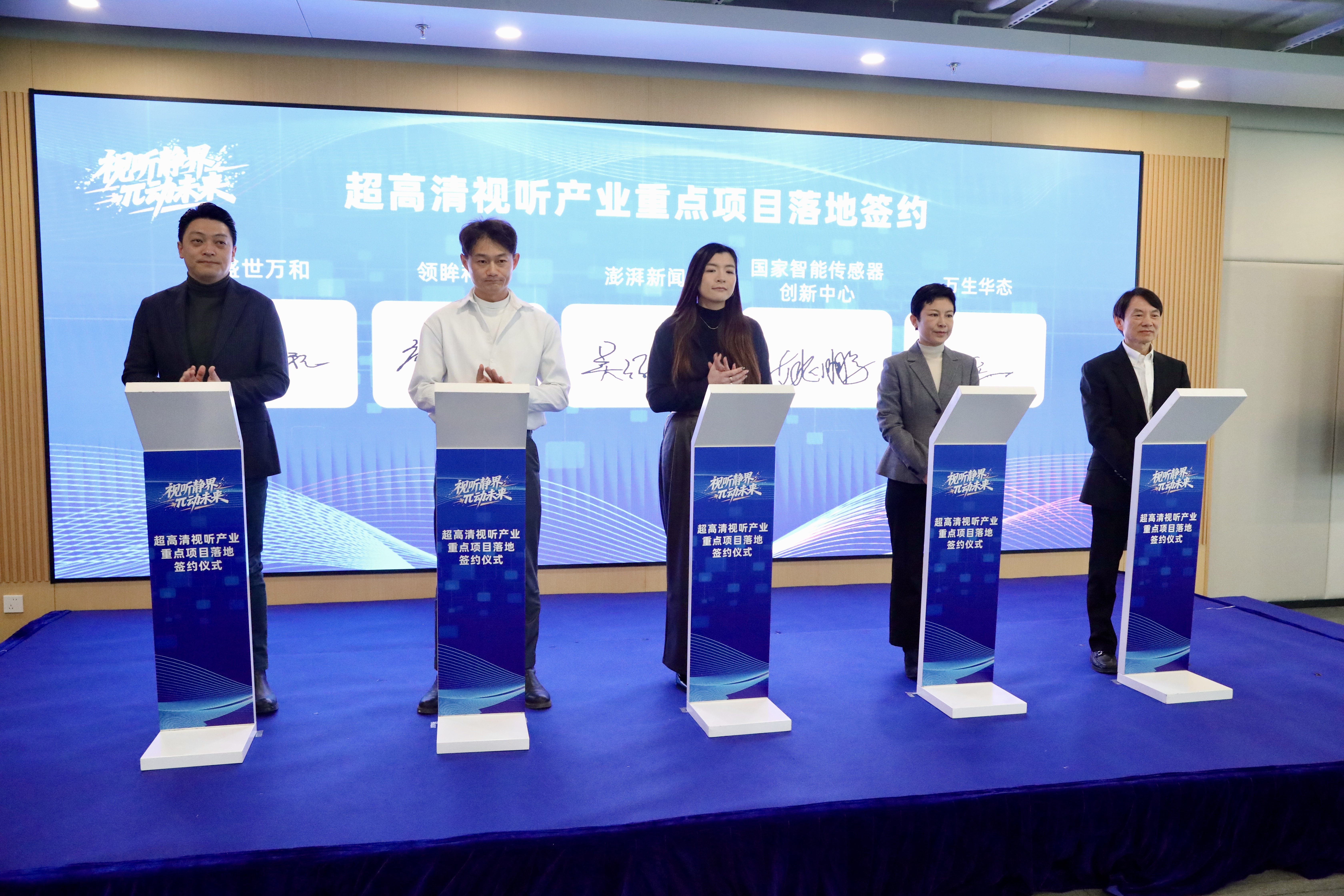 作为本次活动的重要成果之一,现场,超高清视听产业重点项目落地签约仪式举行。盛世万和SKYROAM大空间数字内容创制平台、领眸科技低空融媒项目、澎湃新闻多功能演播厅、国家智能传感器创新中心超芯感知创新空间、万生华态PBRMAX超高清创新中心等五个重点项目顺利完成签约。该批优质项目的落地,将进一步完善静安区超高清视听产业生态链条,为产业规模化、集群化发展注入新动能。