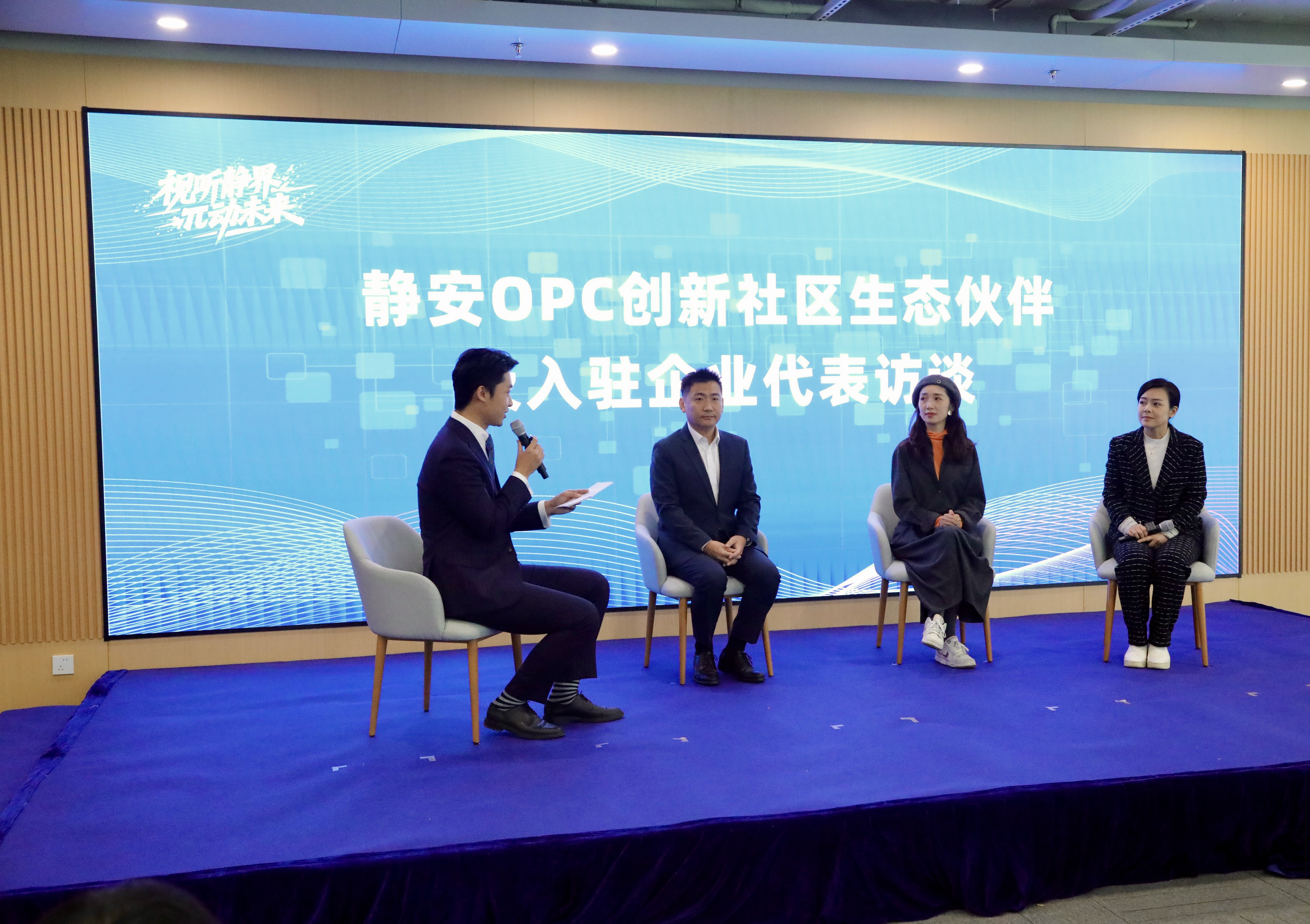 为助力 AI 视听领域创新主体成长,活动现场对近期发布的静安OPC创新社区政策进行了解读;SMG主持人陈辰、小红书内容创作者霞飞巷的邱小姐及上海一起闹海人工智能科技有限公司作为活动嘉宾,分享了对未来的期许。