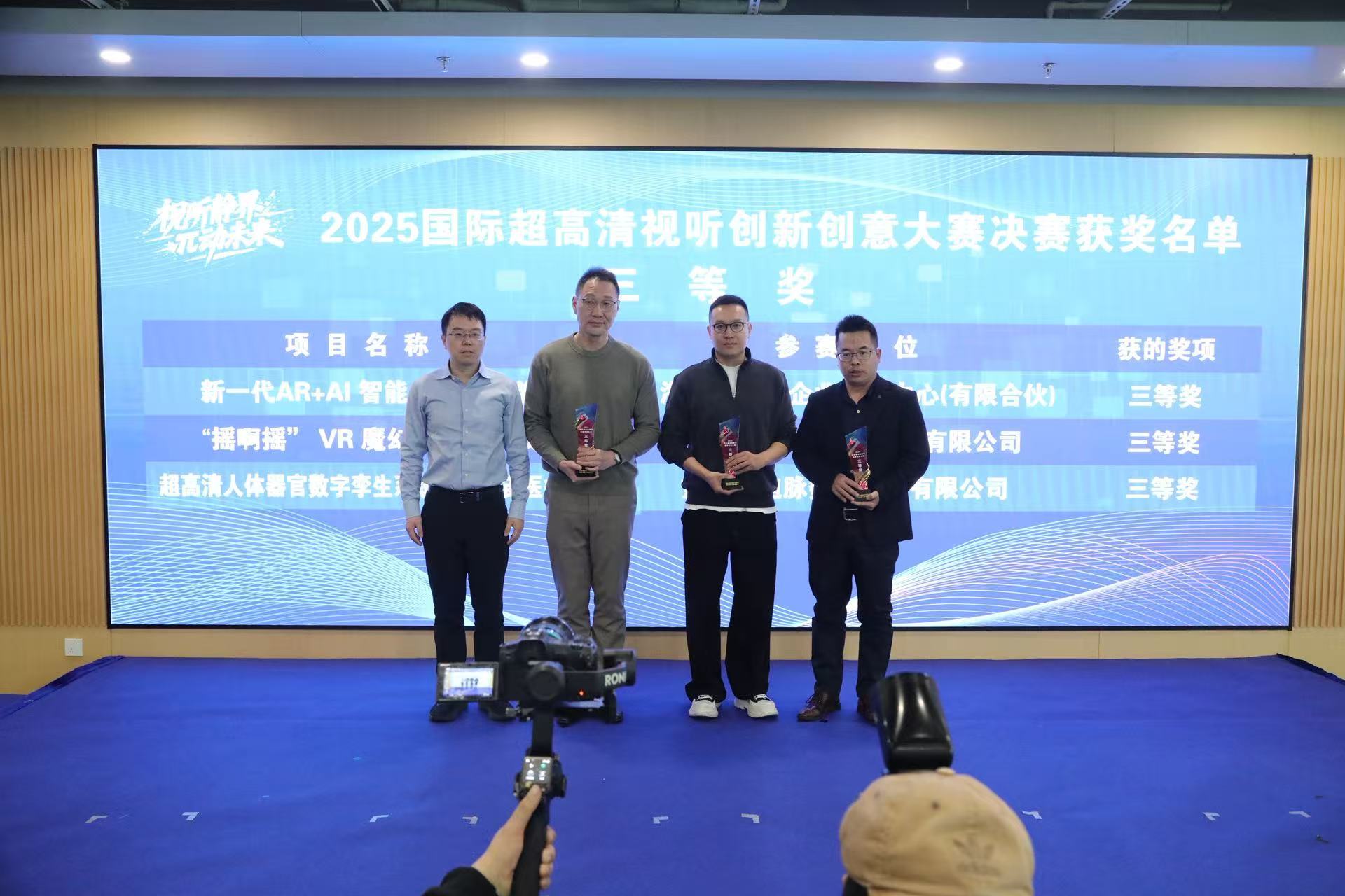 活动现场还举行了2025国际超高清视听创新创意大赛颁奖仪式,龙婉丽、胡勇等分别为获奖项目团队颁奖。