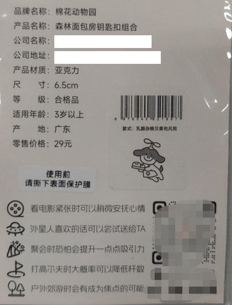 部分钥匙扣等产品在正常使用或滥用测试后产生小零件,未设警示说明。警示语的缺失无法提醒消费者小零件风险,脱落后的小零件被儿童放入口中误吞,可能导致窒息或损伤消化道。