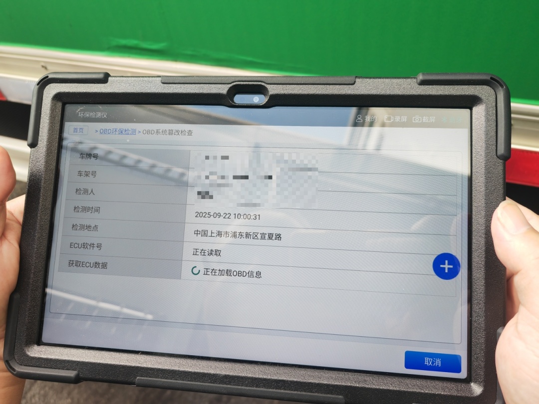 为从源头上防范柴油车上路后排放超标问题,浦东新区环境监测站(以下简称监测站)联合市减污降碳中心,针对辖区内某车辆保有量大、运营频次高的物流用车大户,专项开展重型柴油车入户检查工作。此次检查聚焦“三不、两改、一黑”问题车辆,核心依托具备数据溯源与多参数分析功能的新型OBD诊断仪,实现从“粗放排查”到“精准识别”的监管升级,为柴油车排放监管提供技术支撑。