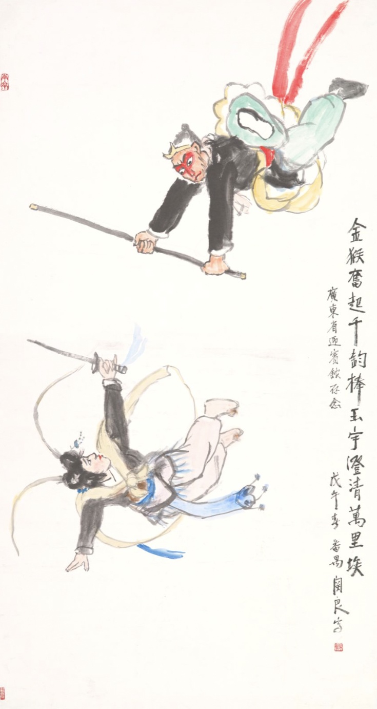 关良《三打白骨精》中国画 179cm×96cm 广东美术馆藏