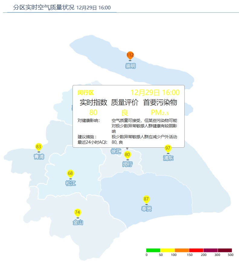 闵行区AQI为80,良。