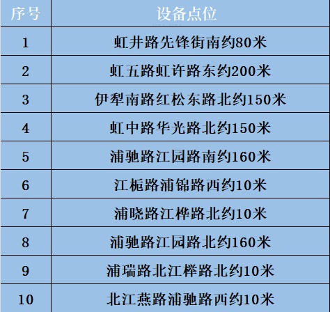 2025年12月30日起,闵行区新增下列电子执法设备,具体点位详见下列图表。