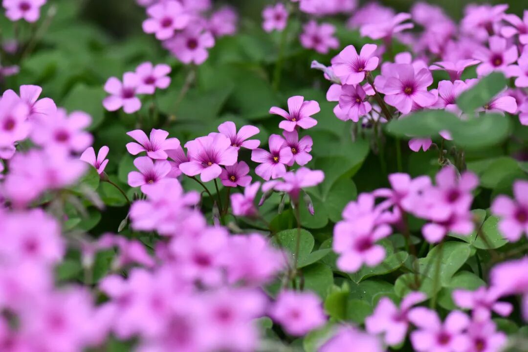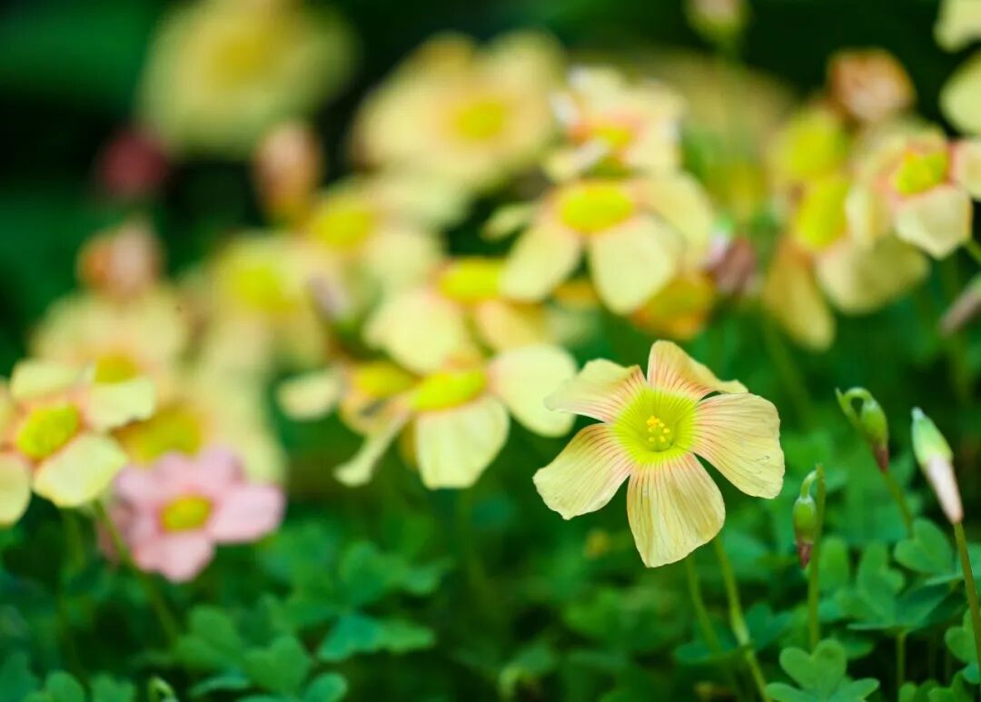 酢浆草的花朵与叶片具有感光特性,晴朗天气下11:00-15:00为最佳观赏时段,此时花朵绽放最为绚烂,堪称“日光限美景”。