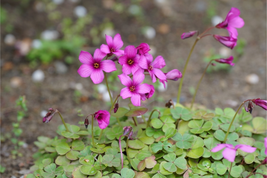 酢浆草属植物是适配岩石园场景种植的优良品类。在岩生植物园内,采用自然组团式配置方式展示酢浆草属植物,其株型小巧与色彩艳丽的花序,与错落排布的岩石形成巧妙呼应;部分从墙垣间隙萌发伸展的植株,增添了自然野趣与生机活力,营造沉浸式自然观赏环境。