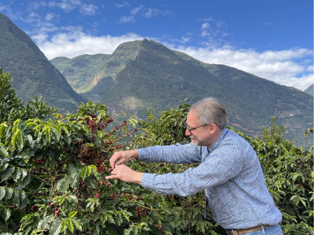 德国咖啡企业家埃里克·巴登在隆阳区咖啡种植基地体验咖啡鲜果采摘